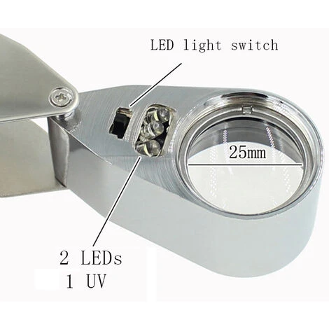 - Potente ingrandimento 40X: la lente da gioielliere LED e UV ha un elevato potere di ingrandimento, in modo da poter ottenere una visione estremamente ravvicinata dei più piccoli dettagli. E ti offre un ingrandimento senza distorsioni. È ideale per l’industria manifatturiera dell’orologeria, l’ispezione di piccoli oggetti, la lettura di piccoli testi o l’ispezione di pietre preziose e diamanti.