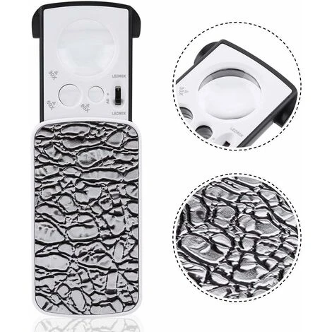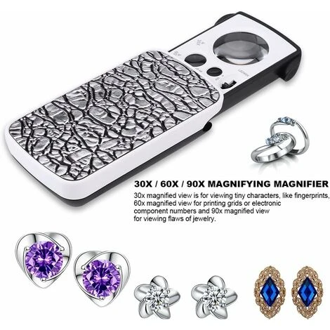 La vista ingrandita 30x è per la visualizzazione di caratteri minuscoli, come come impronte digitali, visualizzazione ingrandita 60x per la stampa di griglie o numeri di componenti elettronici e visualizzazione ingrandita 90x per visualizzare i difetti dei gioielli 3 diverse sorgenti luminose sono per scopi diversi