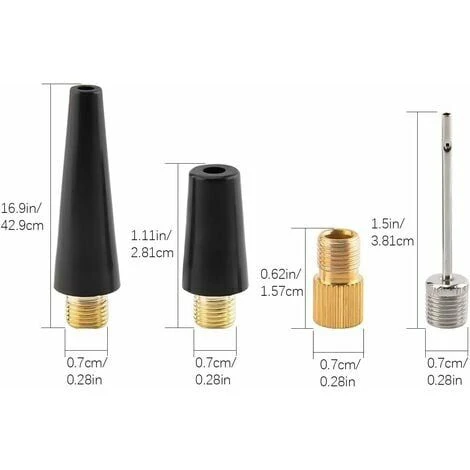 - Dimensioni: I diametri della filettatura di tutti gli adattatori sono 0,7 cm / 0,28 pollici, la dimensione generale per la maggior parte delle pompe ad aria.