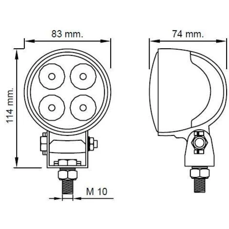 Luce di lavoro ad ampio raggio, diametro 80 mm, 4-LED.