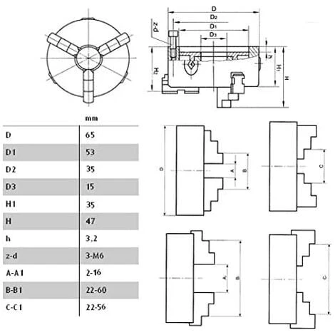 Questomandrino è concepito per l’utilizzo sumacchine utensili di piccole dimensioni (tipo tornio EMCO UNIMAT 3 e 4)per la lavorazione di acciaio, metalli non ferrosi (alluminio, ottone, plastica ecc..).E’ moltocompatto, facile da utilizzare e gode di un elevata precisione concentrica,rispondendo alle esigenze diuna vasta gamma diserraggio.Serraggio manuale o mediante due chiavi in dotazione.Scheda Tecnica