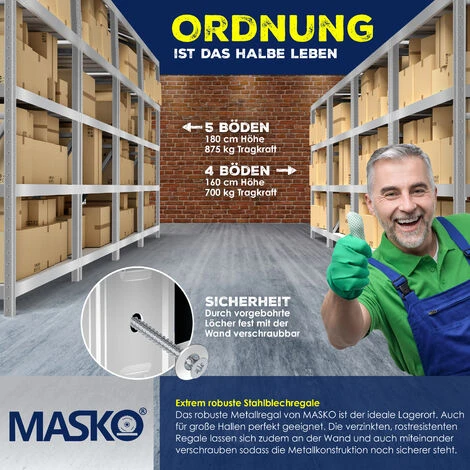 MASKO Con il sistema di scaffalature a 2 pezzi , potrai organizzare e tenere più in ordine il magazzino, l’officina o il garage!