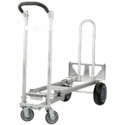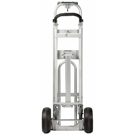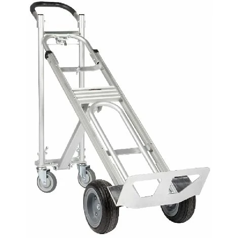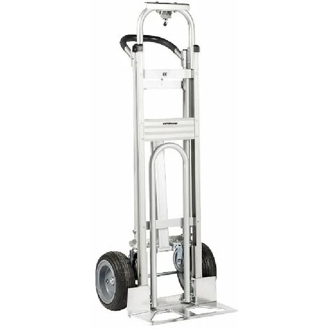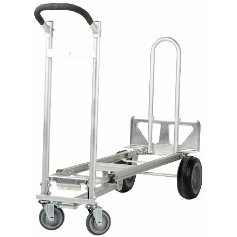 Carrello in alluminio 3 posizioni, 4 ruote: 2 girevoli+2 pneumatiche, portata posizione orizzontale su 4 ruote max 450 kg, porata posizione verticale su 2 ruote max 300 kg, portata posizione 45° su 4 ruote max 250 kg.