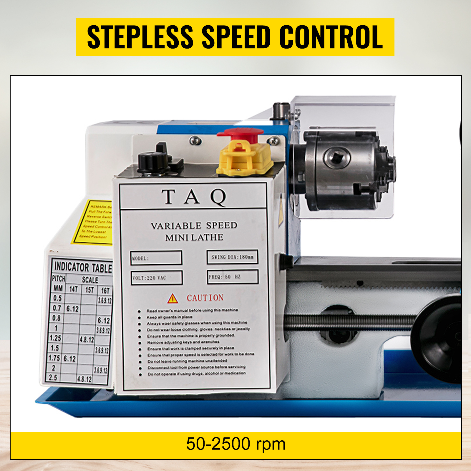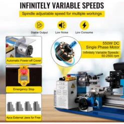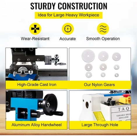- Costruzione Robusta: il mini letto del tornio in metallo è realizzato in ferro di alta qualità. Dotato di ingranaggi in nylon, questo tornio è resistente all’usura, durevole, con una rotazione più precisa e professionale. Mini tornio in metallo potenza del motore: 550 W. Il paraspruzzi a tutta lunghezza offre la massima protezione.
