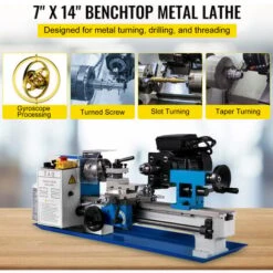 Il mini tornio da banco di precisione da 7 x 14 pollici è dotato di un mandrino a 4 griffe, un cono mandrino MT3, un cono contropunta MT2, un supporto utensile e un motore da 3/4 HP, progettato per eseguire vari tipi di tornitura dei metalli, semplice da usare. Attraverso il processo di tempra ad alta frequenza e la rettifica di precisione del letto di ghisa di alta qualità. 50-2500 giri/min. sottolivello della velocità del mandrino di due tranche di controllo della velocità del cambio dell’ingranaggio del mandrino, regolabile in modo continuo. Una lampada mobile è gratis per te.