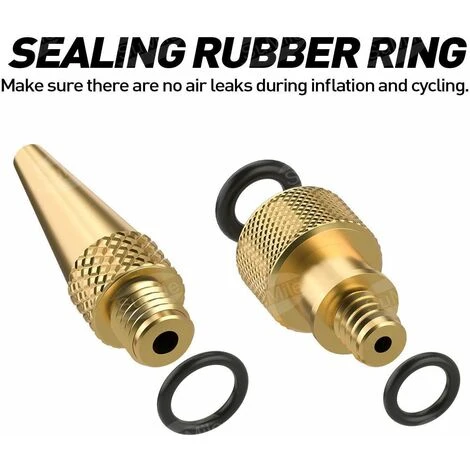 - La confezione contiene 14 adattatori con specifiche diverse: 4 adattatori per valvole DV/SV, 2 adattatori per valvole AV, 2 adattatori per valvole SV, 2 aghi per pompe a sfera, 2 ugelli gonfiabili conici, 2 adattatori conici neri e 10 anelli di tenuta .