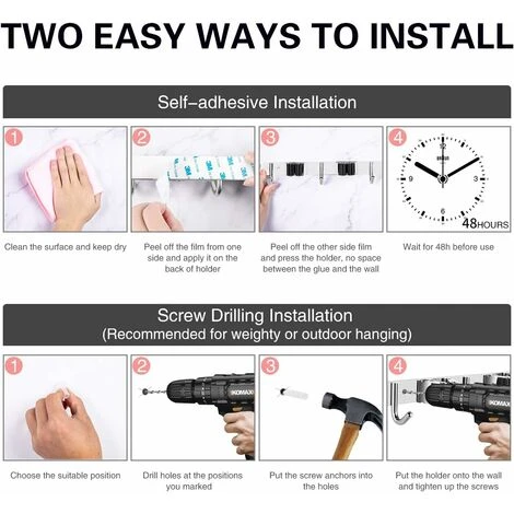 - 2 modi di montaggio: questo supporto per scopa e scopa è così facile da installare e utilizzare, viti per trapano e adesivo per le opzioni di configurazione del supporto per scopa e scopa per tutti gli usi, puoi scegliere il modo migliore per te. (Si consiglia di forare viti per appendere o appendere all’esterno).