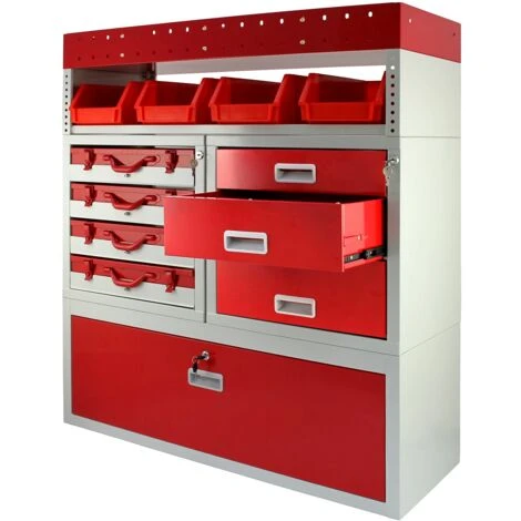 Utilizza lo scaffale per furgoni Firecracker per mantenere tutti i tuoi attrezzi ordinati, massimizzare lo spazio e trovare facilmente ciò di cui hai bisogno. Con un’ampia varietà di ripiani, cassetti e scompartimenti, puoi immagazzinare fino a 60kg di oggetti e attrezzi mentre i cassetti con serratura e il grande armadietto in basso ti permettono di tenere i tuoi strumenti al sicuro.