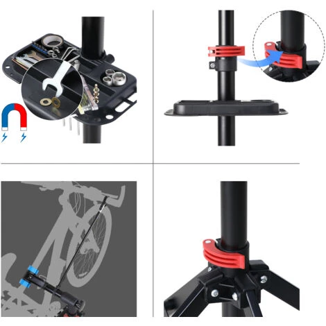Il cavalletto di montaggio per bici a marchio Monzana con un carico max. di 30 kg è particolarmente robusto e resistente. Il telaio è infatti relaizzato in acciaio laminato a freddo e verniciato a polvere con tubi dal diametro max. di 38 mm e lo spessore di 1,7 mm. Gli elementi in plastica sono realizzati in ABS di alta qualità e resistente agli urti. Oltre all’elevata stabilità e sicurezza di questo attrezzo da officina, il cavalletto vi permette di allineare con precisione la vostra bici e lavorare con la schiena dritta e senza troppi sforzi.