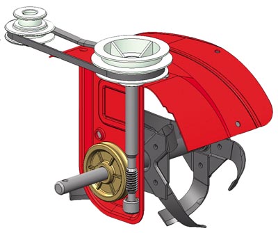 La trasmissione della motospazzatrice Sandy avviene tramite vite senza fine in bagno d’olio e cinghia.