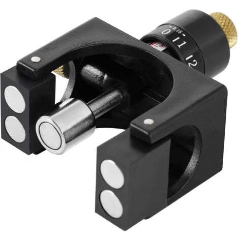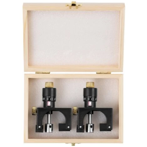 In primo luogo, ogni calibro di regolazione magnetico per lame piallatrici viene azzerato posizionandolo su un’area liscia dell’albero e impostandolo sullo zero. Quindi la parte centrale del calibro di regolazione della lama piallatrice viene sollevata alla distanza desiderata e poi fissata. Le lame piallatrici non dovrebbero trovarsi a più di 1,1 mm sopra la testa della fresa, altrimenti viene rimosso troppo truciolo e la superficie non appare pulita. I calibri vengono poi posizionati sull’albero sopra la lama. I magneti tengono la lama saldamente alla distanza desiderata dall’albero, il che significa che il rischio di lesioni è molto più basso rispetto alla regolazione senza calibro.
