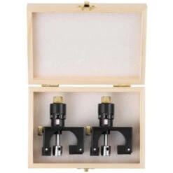 Ora la lama può essere fissata facilmente e senza scivolare. Le viti delle barre di serraggio devono essere serrate a partire dal centro per evitare tensioni e per proteggere l’albero. Infine, calibro di regolazione magnetico per lame piallatrici può essere rimosso nuovamente. Suggerimento: prima di regolare le lame piallatrici, l’albero può essere liberato con aria compressa dai trucioli che potrebbero interferire con la regolazione. Il set di due calibri di regolazione per lame piallatrici è realizzato in ABS e acciaio (Q235) ed è fornito in un pratico contenitore in legno.