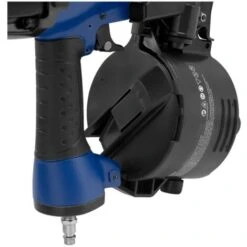 Mit einem maximalen Arbeitsdruck von 120 psi bzw. 8,27 bar bei einem empfohlenen Druckbereich von 70 – 100 psi bzw. 4,83 – 6,89 bar und einem Luftverbrauch von 185 l/min bietet die Nagelpistole Druckluft starke Leistungswerte. Mit dem Standardanschluss 1/4” PT kuppeln Sie den Coilnagler problemlos über gängige Verbindungsschläuche an den Kompressor. Grazie all’uscita dell’aria regolabile, lavori in modo pulito e confortevole. L’impugnatura morbida ed ergonomica e l’assorbimento degli urti garantiscono inoltre un utilizzo comodo e poco faticoso. Dabei arbeitet die Druckluft-Nagelpistole mit einem Rundmagazin von bis zu 200 – 350 Nägeln reibungslos und durchgängig über lange Zeit – wahlweise mit sequenziellem oder Kontaktauslöser.