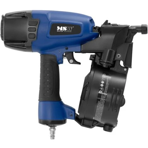 La chiodatrice ad aria compressa professionale di MSW fa risparmiare tempo e forza nei cantieri, nell’industria e nei lavori a casa. La chiodatrice pneumatica può essere utilizzata per tanti lavori differenti e su superfici diverse: da un lavoro su tetti e facciate al montare i mobili o per tutti quei lavori di riparazione. Um den unterschiedlichsten Ansprüchen gerecht zu werden, bietet der Luftdrucknagler eine einstellbare Tiefenführung und arbeitet mit Nägeln unterschiedlicher Länge (32 – 65 mm).