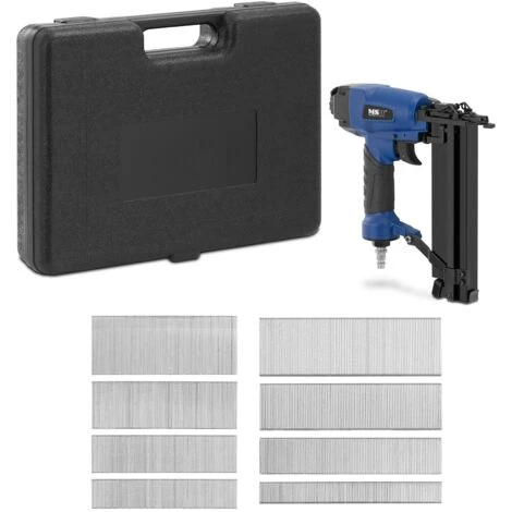 La chiodatrice ad aria compressa con graffatrice 2 in 1 di MSW fa risparmiare tempo e forza nei cantieri, nell’industria e nei lavori a casa. La chiodatrice pneumatica può essere utilizzata per tanti lavori differenti e su superfici diverse: da un lavoro su tetti e facciate al montare i mobili o per tutti quei lavori di riparazione. Um den unterschiedlichsten Ansprüchen gerecht zu werden, bietet der Luftdrucknagler eine einstellbare Tiefenführung und arbeitet mit Nägeln einer Länge von 15 / 25 / 32 / 40 / 50 mm sowie Klammern mit 16 / 25 / 32 / 40 mm Länge.