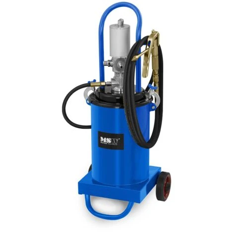 L’ingrassatore pneumatico PRO-G 12 di MSW è un potente ingrassatore per lubrificare macchine, impianti e componenti dei dispositivi. L’ingrassatore è un dispositivo pneumatico adatto nel settore agricolo, nell’industria e nelle autofficine. Con la sua generosa capacità di 12 l, il tubo flessibile pneumatico con una lunghezza di lavoro di 4 metri e la potente pressione della pompa da 240 a 320 bar, l’ingrassatore pneumatico è facile da maneggiare, affidabile ed efficiente nella sua capacità di lavoro. Nonostante il basso consumo di aria, l’elevata pressione di lavoro permette di spruzzare anche lubrificanti con viscosità elevata, quindi molto spessi.