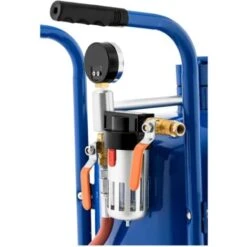 Il robusto tubo di lavoro, assicurato con una valvola di chiusura e lungo 2,5 cm, assicura mobilità e facile manovrabilità nel lavoro quotidiano. Anche le grandi ruote in gomma ti supportano in questo. Grazie alla sua mobilità è adatta in particolare per trattare pezzi fissi e ingombranti.
