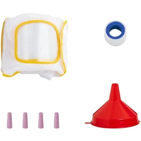La sicurezza è un importante fattore fin dall’inizio: la prestazione è controllata da un regolatore ad aria, allo stesso tempo il dispositivo è dotato di una valvola di sicurezza che protegge da eventuali aumenti di pressione. Nella spedizione, oltre alla sabbiatrice ad aria compressa, è presente anche un imbuto di riempimento, un nastro in teflon e quattro diversi ugelli.