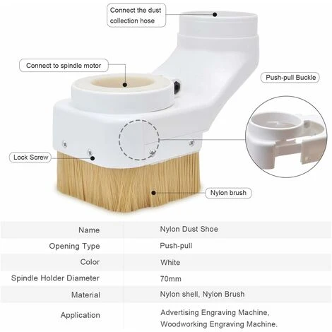- Applicazione: questo pattino parapolvere CNC NL330 può essere utilizzato in macchine per incidere pubblicitarie, macchine per incidere per la lavorazione del legno, macchine a rulli di pressione, per rimuovere trucioli di legno e polvere sul consolidato.