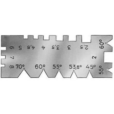 Calibre d’affûtage pour outil à fileter universel Filetage pointu : 55, 60 ° – Pour filetage trapézoïdal de 2- 12 mm/Pas et filet carré 2- 8 pas/pouce – Toutes les entailles sont fraisées proprement