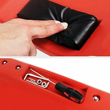 -Piattaforma ergonomica grande -Cuscinetto imbottito -Stabilita grazzie alla segmentazione sul fondo -2 scompartimenti laterali -Ruote girevoli 360° -Facile da lavare -Materiale resistente all’olio e ai solventi -Inossidabile -Maniglia per trasportare