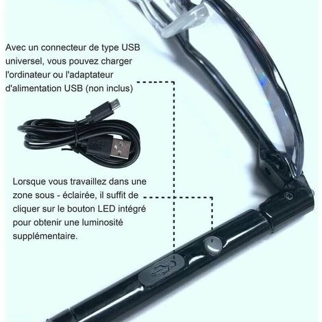 【Luce da lavoro ricaricabile】: le lenti di ingrandimento con luce sono ricaricabili, quindi sono sempre pronte quando ne hai bisogno. Non dovrai più preoccuparti di sostituire le batterie esterne.