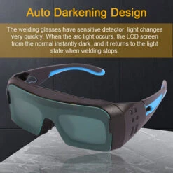 Design auto oscurante: Gli occhiali per saldatura hanno un rilevatore sensibile, la luce cambia molto velocemente. Quando si verifica la luce dell’arco, lo schermo LCD dal normale si oscura istantaneamente e ritorna allo stato luminoso quando la saldatura si interrompe.