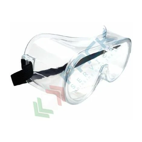 Occhiali di protezione a mascherina in plastica con montatura realizzata in PVC e mono lente trasparente realizzata in policarbonato. Occhiali da lavoro antinfortunistici certificati EN 166 (Protezione personale degli occhi). Occhiali protettivi modello economico realizzati con foro di aerazione e fascia elastica regolabile. Colore trasparente. Occhiali protettivi con Mis. 185 L x 91 P x 62 H mm. Ideali per uso medico, laboratorio, industriale e molto altro. Gli occhiali hanno dei forellini sulla parte laterale della maschera, pertanto la ventilazione è diretta.