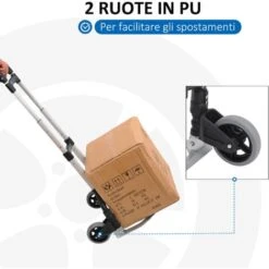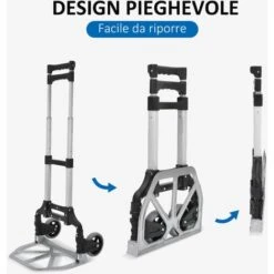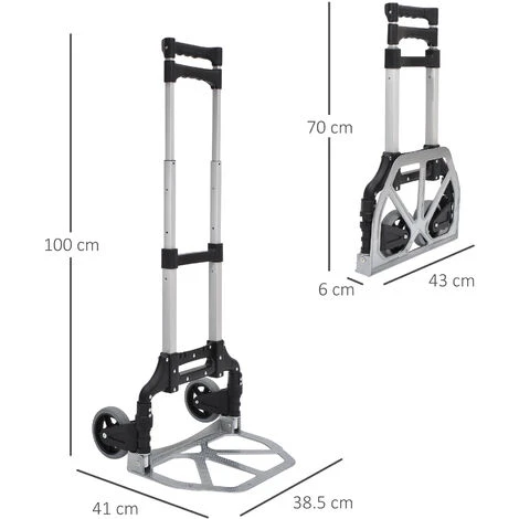 Questo carrello portapacchi HOMCOM renderà i tuoi traslochi molto più semplici e pratici. Costruito in solida lega di alluminio, è robusto e leggero al tempo stesso. Grazie al suo design pieghevole, il carrello da trasporto si adatta alle varie forme e dimensioni dei tuoi pacchi, oltre a essere facile da riporre in auto e da tirare fuori quando necessario. Dotato di due impugnature pratiche per l’uso, il carrello pieghevole è rifinito con due ruote scorrevoli per un viaggio senza imprevisti.