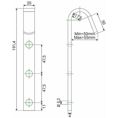 – Per correntino di aggancio fino a 30mm di diametro.