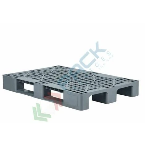 Bancale in plastica riciclata (PP), Mis. 800 L x 1200 P x 150 H mm, base di appoggio 2 traverse, portata dinamica 750 Kg, portata statica 1500 Kg, portata su scaffale 150 kg, piano superiore forato. Pallet in plastica con elevata capacità di carico, realizzato in materiale completamente riciclabile, di prima fusione garantito e certificato. Non richiede alcuna manutenzione particolare, esente da danneggiamento per intemperie ed umidità, resistente alle alte e basse temperature. Il bancale di plastica è maneggevole, può essere inforcato con traspallet o carrello elevatore. Pedana ideale per la logistica, lo stoccaggio e la movimentazione, utilizzata sia nell’industria leggera che in quella pesante. Colore grigio. Pallet plastica NON idoneo al contatto alimentare.