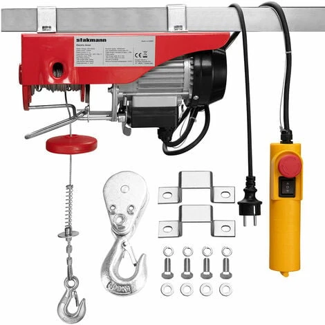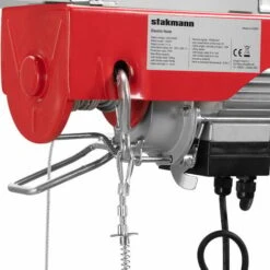 SPECIFICHE PRODOTTO:Marca: StakmannTensione: 220_230V – 50HZPotenza 1000W Sollevamento peso singola fune: 200kgSollevamento peso doppia fune: 400kgAltezza di sollevamento singola fune: 12mAltezza di sollevamento doppia fune: 6mVelocità sollevamento singola fune: 8m/minVelocità sollevamento doppia fune: 4m/minDiametro della fune: 4,0mmLunghezza cavo di comando: 1,5mLunghezza del cavo di alimentazione: 0,65 mClasse sicurezza: M1Classe di isolamento: BClasse di protezione: IP 54Certificato: GS/CE/EMC/ROHS/PAHSAccessori per il montaggio inclusi nella confezione
