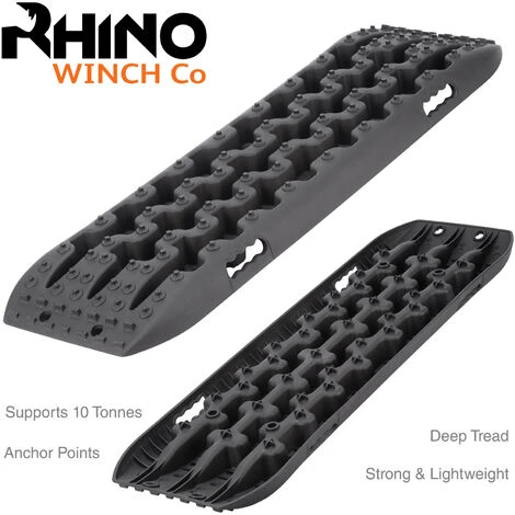 Rhino – 4×4 Tavola di Recupero Fuga Gradino 10T Fuoristrada Presa per la Trazione Tavola Invernale Sabbia/Fango/Neve x2 (Nero)