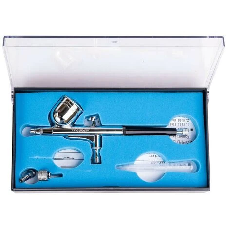 Aerografo professionale da 0,3 mm capace di verniciare in modo preciso su qualsiasi tipo di superficie. Adatto per il ritocco, restauro, modellazione, artigianato e decorazione di piccoli oggetti.