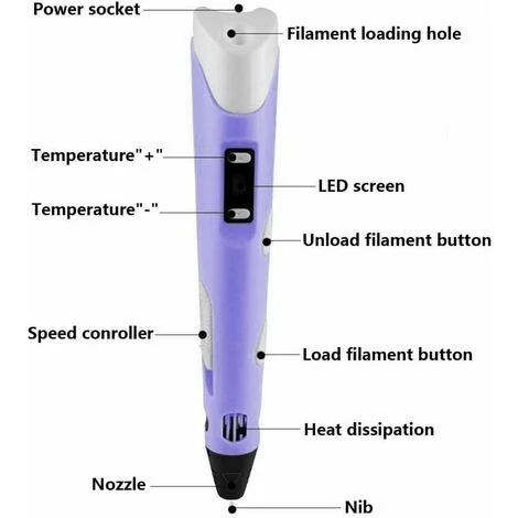- Conveniente-La penna d & #39; La stampa 3D è comoda quanto la penna normale con un pulsante di controllo. Ugello in ceramica unico, più sicuro per i bambini. Disabilitare automaticamente la protezione della funzione.