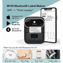 Facile stampa di etichette — Stampante per etichette autoadesiva con mini stampante termica Bluetooth per dispositivi mobili, basta collegare il telefono. Ci sono molti modelli in APP (Print Master o Phomemo-M110), puoi stampare facilmente qualsiasi etichetta di cui hai bisogno, etichetta di abbigliamento, cartellino del prezzo, etichetta di cavo, etichetta di gioielli, etichetta di indirizzo, etichetta di cartella, ecc.