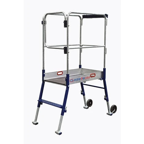 – Installazione della scala a gazzella con stabilizzatori a dislivello integrati: regolazione indipendente su ogni piede.