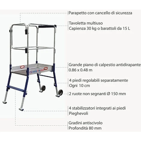 – Altezza di lavoro confortevole corrisponde all’altezza della piattaforma + 2.00 m.