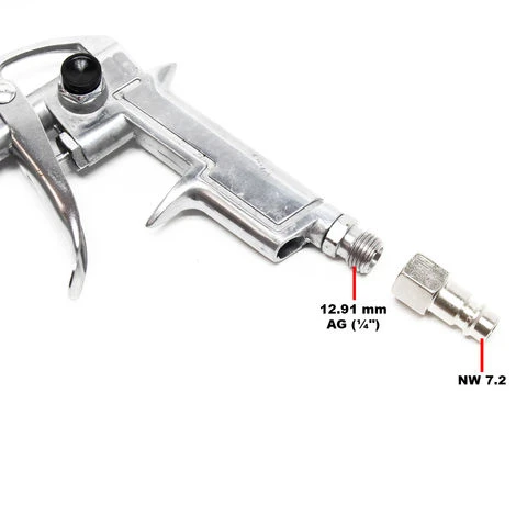Attraverso il nipplo di inserimento integrato, la pistola può essere collegata in modo tanto rapido quanto veloce e, grazie all’attacco rapido da 1/4, è compatibile con qualsiasi compressore standard.