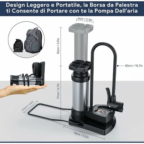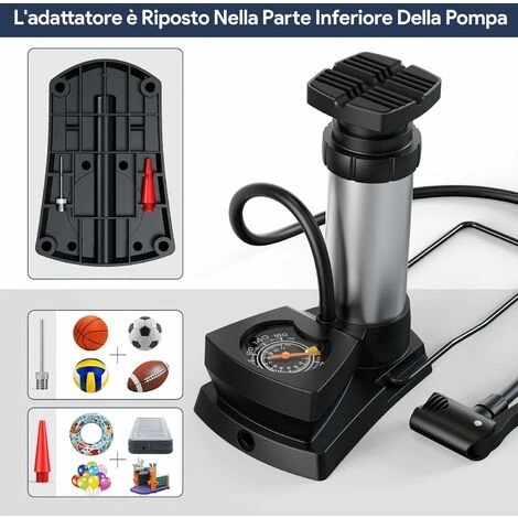 ⚽ 【Gonfiatore per bicicletta azionato a mano ea pedale】Il gonfiatore per bicicletta azionato a mano ea pedale rende il pompaggio più veloce e più facile. I pedali in gomma antiscivolo rendono la pompa più stabile durante l’uso. Alta pressione, manometri fino a 11 bar e 160 psi, gonfiaggio rapido e risparmio di tempo.