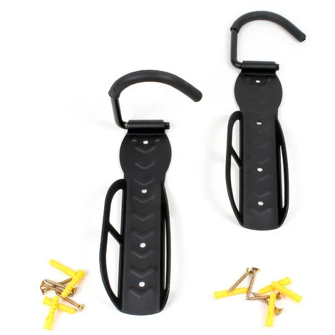 Il pratico set di supporti da parete include due ganci per biciclette in materiale stabile e duraturo. Le staffe sono adatte per le dimensioni di ruote e i tipi di biciclette più comuni (ad esempio mountain bike, bici da corsa, bici da bambini, ecc.). Grazie all’eccellente lavorazione, ogni gancio può sostenere biciclette fino a 30 kg di peso. La struttura antiscivolo dello stand per biciclette assicura una tenuta sicura. Le bici possono essere appese dalla ruota anteriore o da quella posteriore. È sufficiente appendere la bicicletta verticalmente nella staffa o estrarla nuovamente fuori.