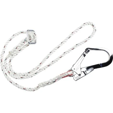 Cordino di posizionamento in poliestere regolabile ideale per ritenuta sul lavoro. È lungo 200 cm compreso i connettori. Certificato CE