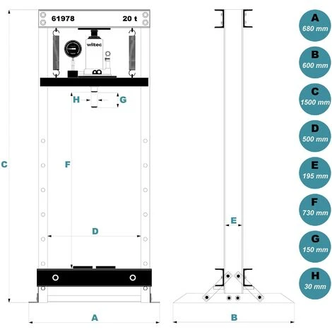 La solida struttura del telaio è in acciaio e le traverse bullonate con le ganasce di supporto sono regolabili su diverse altezze. L’altezza del piano della pressa è regolabile tramite poche viti che vanno allentate o serrate.