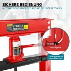 Con questa pressa da 12 tonnellate, potrete fare, senza grandi sforzi, lavori di allineamento, di piegatura e compressione degli oggetti. La nostra pressa è lo strumento ideale per le riparazioni, i restauri e molto altro ancora.
