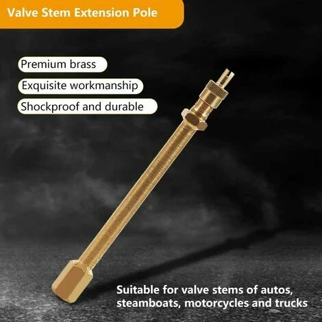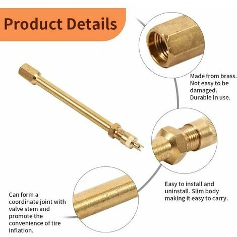 Con il nostro stelo di prolunga della valvola per pneumatici in ottone, puoi gonfiare facilmente i pneumatici in modo rapido, comodo per l’uso e il trasporto. Il palo di estensione dello stelo della valvola del pneumatico è un utile strumento per lo stelo della valvola, realizzato in materiale di ottone. Grazie al suo materiale di alta qualità, l’asta di estensione dello stelo della valvola del pneumatico non è facile da danneggiare e molto durevole nell’uso