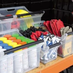 I contenitori di capacità più elevati hanno ruote per il trasporto a un’estremità e le gambe nell’altra per facilitare il loro freno.