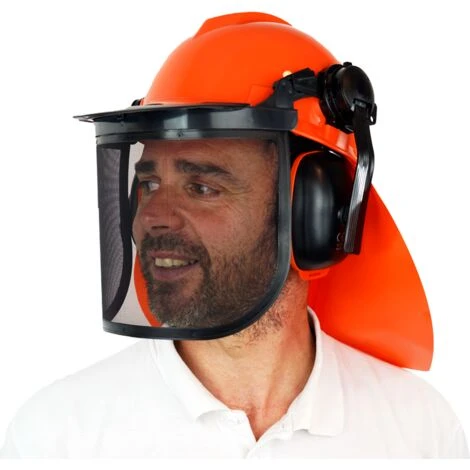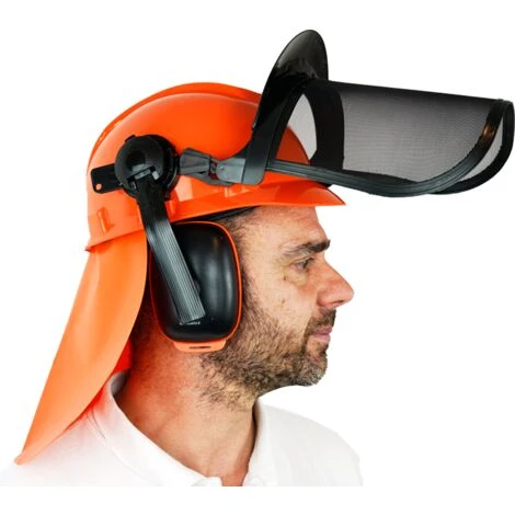 Protezione del casco della foresta adattabile con griglia per una corretta protezione. Rispetta tutte le norme europee in materia di sicurezza. completamente omologato. Adatto per qualsiasi utilizzo con la spazzatura.