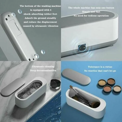 colore come mostrato Dimensioni: 19,8 x 8,2 x 8 cm Peso: 180 grammi PULIZIA EFFICIENTE: l’energia ultrasonica a 8000 Hz genera milioni di microscopiche bolle di pulizia che rimuovono delicatamente lo sporco senza l’uso di prodotti chimici aggressivi o detergenti. Il movimento dell’acqua sembra delicato, ma in realtà crea una pulizia profonda per penetrare nelle aree più difficili.,PULIZIA AD ULTRASUONI A 360° E VIBRAZIONE AD ALTA FREQUENZA: Il dispositivo di pulizia ad ultrasuoni è stato sviluppato con una vibrazione ad alta frequenza di 8000 Hz/minuto e genera un suono a 360°. onde per rimuovere grasso, polvere e batteri dall’oggetto per ottenere un effetto di pulizia Risparmio di spazio: il pulitore ad ultrasuoni ha un aspetto raffinato e compatto. Il pulitore per occhiali occupa meno spazio sul banco rispetto ad altri pulitori a ultrasuoni. Con un contenitore, il pulitore ad ultrasuoni può pulire bene oggetti piccoli e grandi. Ma MAI mettere insieme oggetti fatti di materiali diversi nel pulitore ad ultrasuoni!,FUNZIONAMENTO CON UN PULSANTE: il funzionamento del pulitore ad ultrasuoni è un gioco da ragazzi. Il pulitore ad ultrasuoni ha solo un interruttore on/off. Chiunque può facilmente utilizzare detergenti per occhiali ad ultrasuoni. Premi il pulsante di accensione, il pulitore ad ultrasuoni portatile si accenderà, quindi premi di nuovo per spegnere il dispositivo.,AMPIA APPLICAZIONE: Il pulitore per gioielli ad ultrasuoni può pulire gioielli, occhiali, orologi, strumenti per il trucco, bretelle, dentiere, ciucci, piatti, rasoi, monete e strumenti di laboratorio. È un dispositivo ideale per laboratori, negozi di elettronica, ottici e gioiellerie, negozi di orologi, riparazioni di cellulari, uffici e abitazioni.