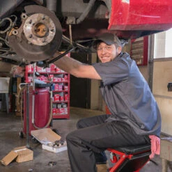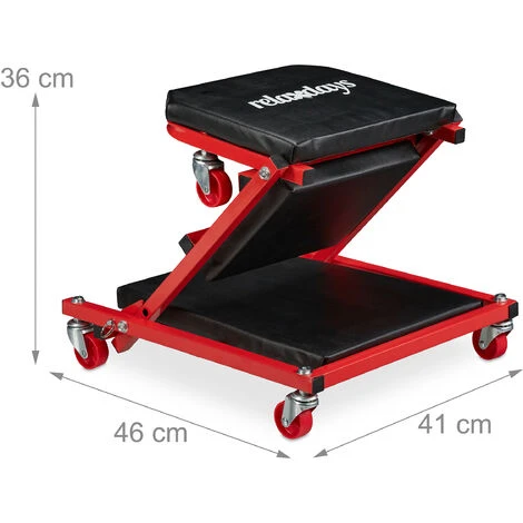 Questo sgabellino è il sogno di ogni meccanico professionista o di un amante del fai da te! La funzione a lettino permette di scivolare sotto la carrozzeria per lavorare comodamente senza sforzare le giunture. Quando serve, potete poi riposizionarlo e usarlo come pratico sgabello da lavoro: basta alzare i bulloni di sicurezza e tirare sul lo schienale. La struttura è resistente e robusta e grazie al rivestimento in pelle finta facile da lavare potete usare lo sgabello tranquillamente per tutti i lavori manuali.