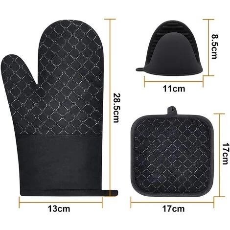 - 【RÉSISTANCE À CALORE: il set di due guanti da forno, due presine e due mini guanti da cucina può far fronte al caldo. tutte le situazioni senza problemi! Le presine da cucina sono perfette per appoggiarci sopra i piatti caldi. Guanti e presine reggono bene calore, anche se si estrae una pietanza calda dal forno a 220° per piu ‘di un ora! Guanti e presine super efficienti, puoi prendere una griglia per barbecue calda. più di 300° e non senti niente.